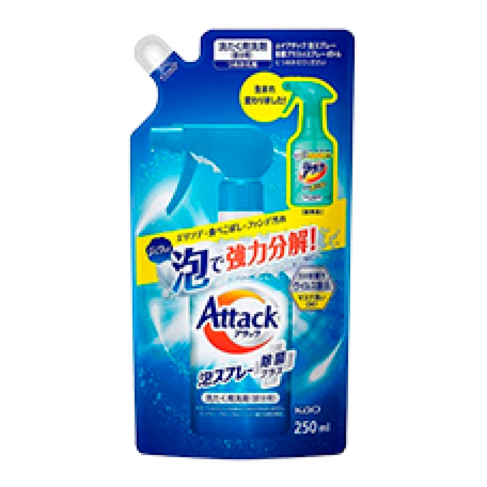 Дезинфицирующая спрей-пена против пятен без флуоресцентных и отбеливающих веществ "Attack Foam Spray Sterilization Plus", 250 мл. (Запасной блок)