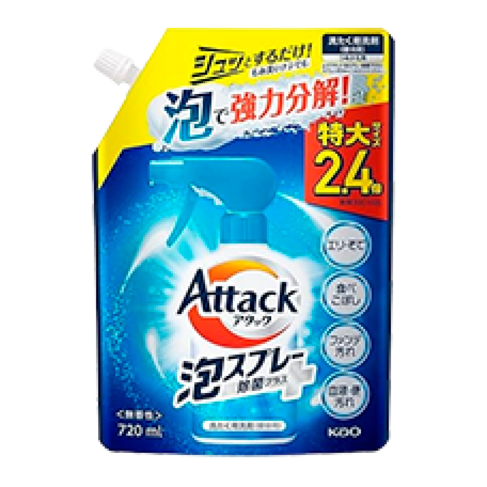 Дезинфицирующая спрей-пена против пятен и стойких запахов без флуоресцентных и отбеливающих веществ "Attack Foam Spray Disinfectant Plus Deodorant Power", 720 мл (Запасной блок)